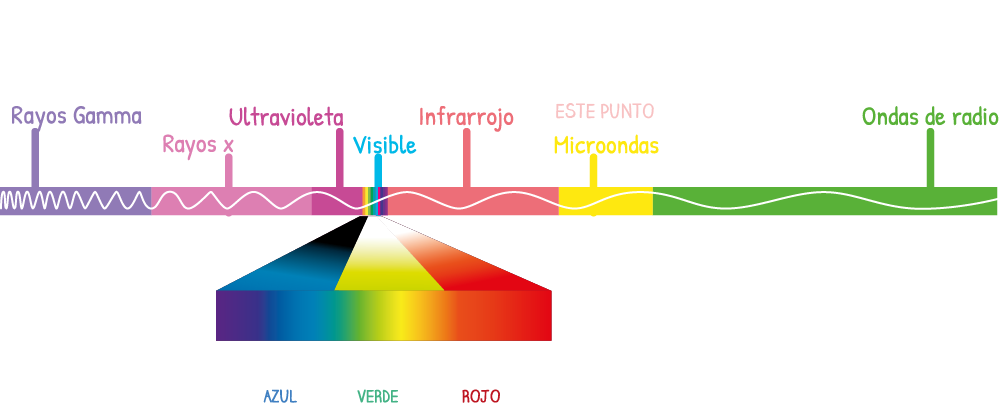 ¡Muy bien! La radiación que podemos ver es conocida como luz blanca o luz de día, que al descomponerse forma los colores del arcoíris.
