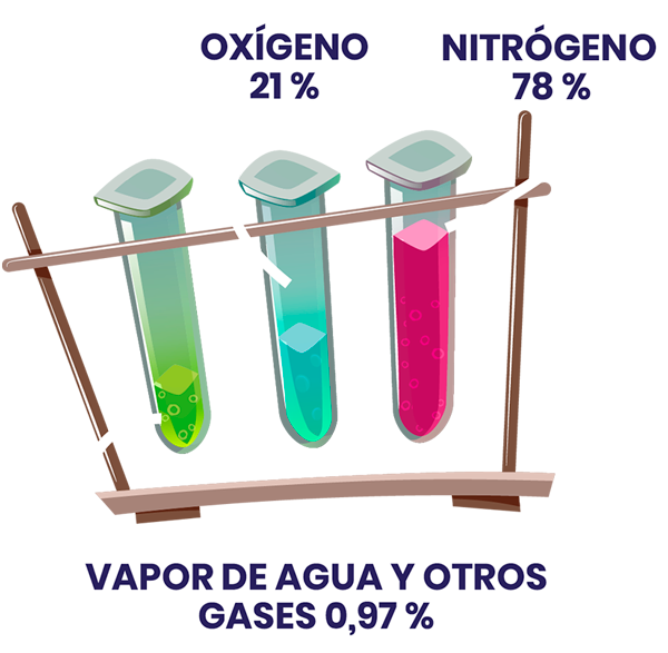 dióxido de carbono (CO2 ), dióxido de azufre (SO2)y nitrógeno (N2). Pero sin rastro del oxígeno que podemos hoy respirar, solo a través de los años, los diferentes procesos biológicos, químicos y físicos han transformado esta masa de aire en lo que conocemos hoy.